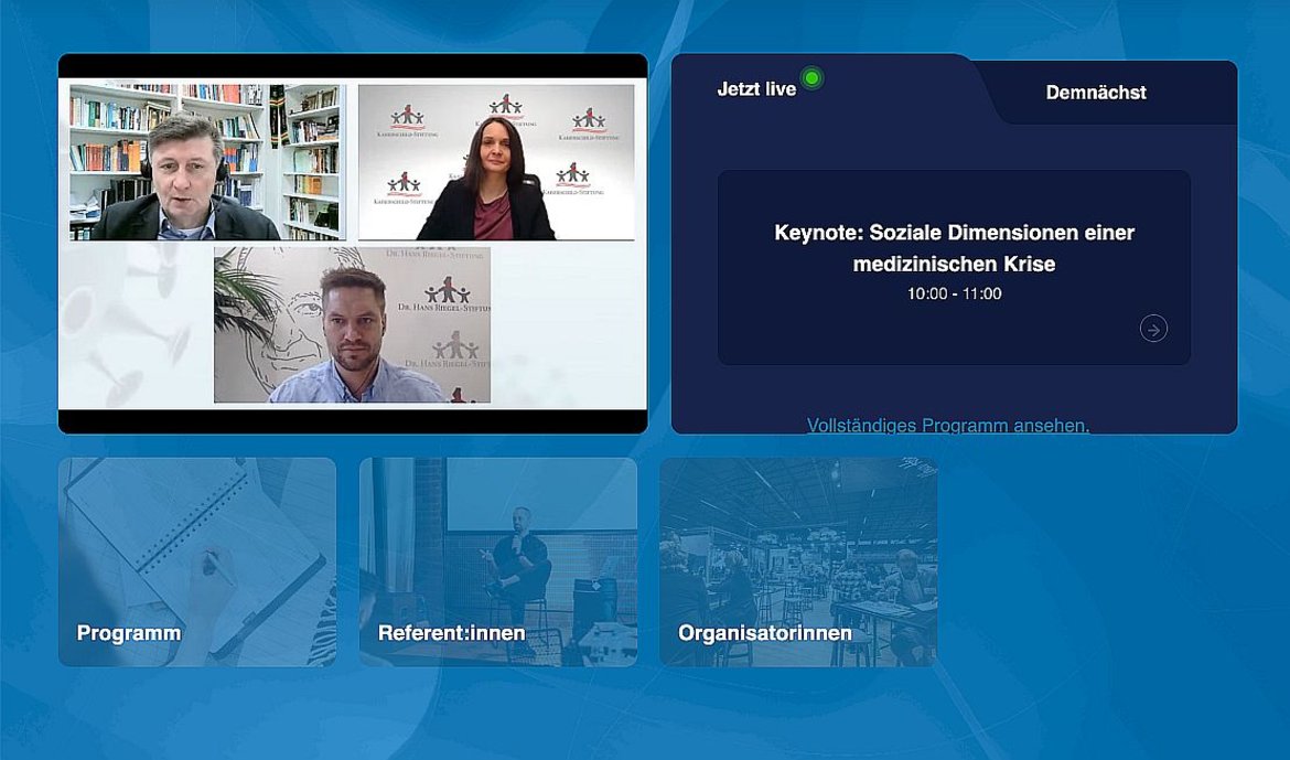 In Themenräumen wurden Forschungsprojekte vorgestellt, die sich mit den Auswirkungen der Pandemie auf die Arbeitswelt, das Konsumverhalten, das Gesundheitssystem, die Wirtschaft, Kommunikation, das Bildungssystem und andere gesellschaftliche Teilbereiche beschäftigt haben.