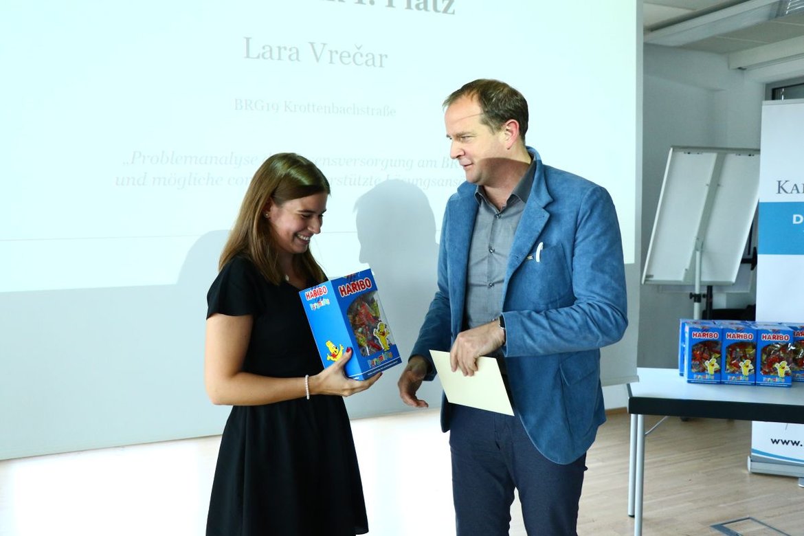 Im Zuge von Kurzpräsentationen haben die sechs Erstplatzierten der Fachrichtungen Biologie, Chemie, Geographie, Informatik, Mathematik und Physik die Problemstellungen und Ergebnisse ihrer VWA vorgestellt. Dabei wurden dem Publikum spannende Einblicke gewährt. Auch die Zweit- und Drittplatzierten überzeugten mit ihrem Engagement und vielfältiger Themenwahl wie „Gliders – Without An Engine“, „Die Entstehung und Funktionsweise künstlicher neuronaler Netze“ und „Social Behaviour of Common Ravens (Corvus corax)“.