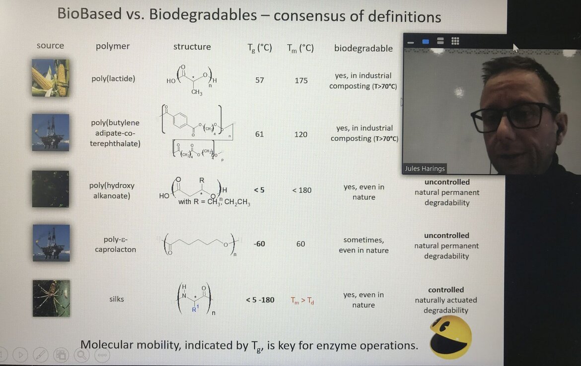 Parallel zu den vier Online-Break-Out Sessions in Wien arbeiteten Studierende des Aachen-Maastricht Institute for Biobased Materials der Universität Maastricht ebenfalls an einem anwendungsorientierten Fallbeispiel. Nach den Arbeitssessions skizzierte jede Gruppe die bearbeitete Problemstellung und präsentierte die erzielten Schlussfolgerungen im Plenum.