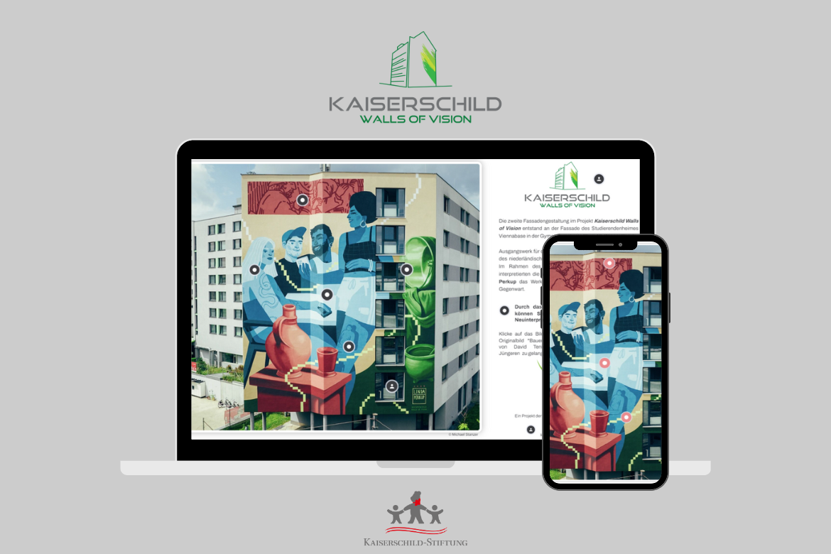 Die interaktiven Bilder werden in die Vermittlungsstrategie des Projekts eingebunden und sind an der jeweiligen Fassade über QR-Code abrufbar, um den Betrachtenden den Interpretationsweg und weitere Informationen zu Original und Neuinterpretation näherzubringen.